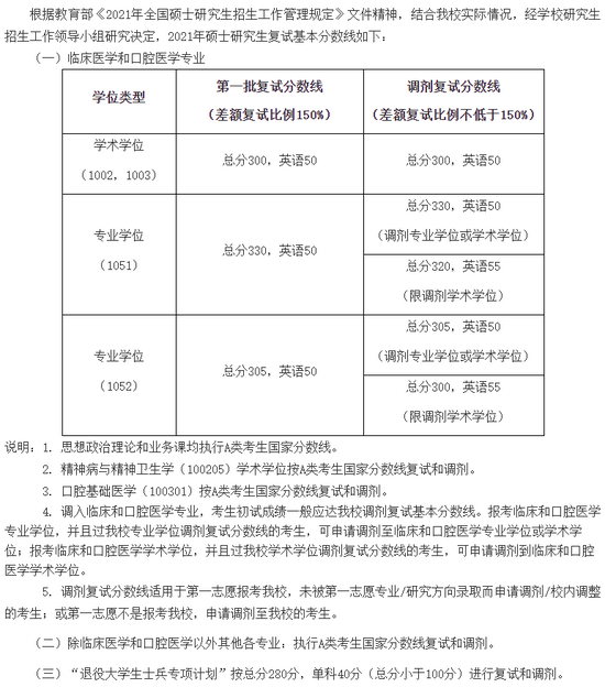 由于2022年南京医科大学考研复试分数线还未发布,这里给大家整理了2021年复试分数线的内容,供大家参考!