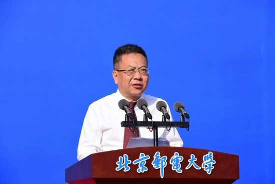 开学典礼上,校长乔建永发表了题为“超越自我 为未来奠基”的主题演讲。首先,乔建永向全体2021级新生表示热烈的欢迎和衷心的祝贺。面对眼前对大学生活充满期待的新“北邮人”,乔建永以“自己想成为什么样的大学生?”“父母和家人期待你成为什么样的大学生?”“国家和民族希望你成为什么样的大学生?”三个问题向他们发出提问,并寄语全体新生:第一,尽快融入集体,做努力奋进的大学生。希望同学们团结友爱、相互尊重、共同学习,在比学赶帮超中共同成长。第二,超越自我,做阳光进取的大学生。无论是顺境还是逆境,都要有足够强大的内心,奋发图强、超越自我、阳光进取。第三,怀揣梦想,做勇于担当的大学生。面对和回答如何在信息通信、数字经济发展等领域中实现“守正创新”这一新的历史课题时,顽强拼搏、敢为人先,在超越自我中担负起中华民族伟大复兴的重任。