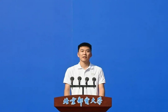 信息与通信工程学院韩雨霏同学代表全体在校生发言,他在发言中与大家分享了在北邮成长中的收获与思考:一是保持专注的状态,持之以恒提升自己的能力;二是保持真诚善良,珍惜同学和集体;三是培养自信自强的心理状态,勇于尝试、敢于挑战;四是正视肩上的责任,保持对知识和事业的热爱。