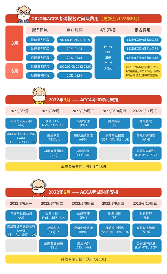 学姐为大家整理了2022年ACCA的考试安排,希望小伙伴们不要错过报名时间!提醒大家:越早报名越省钱!