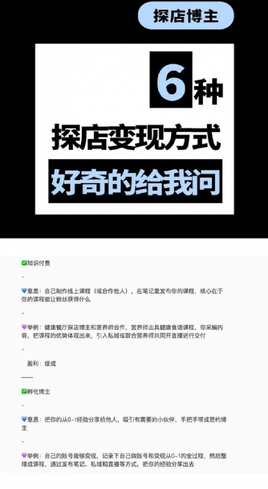 面对激烈的行业竞争,有些博主索性不再关注实体店,而是关注起了想做探店博主的新人。于是探店这个圈子衍生出了内容创作培训项目。新入行的“菜鸟”依玲刚走出校园半年多,就关注起了相关培新信息:“教你如何做一名合格的探店博主,如何做出一个有差异化的探店账号……”,