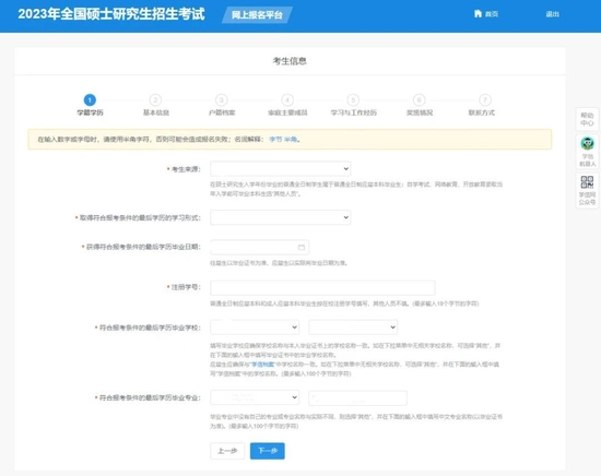 确认实名注册信息后,考生首先要按照《2023年全国硕士研究生招生工作管理规定》要求填写正确的学历(学籍)信息。