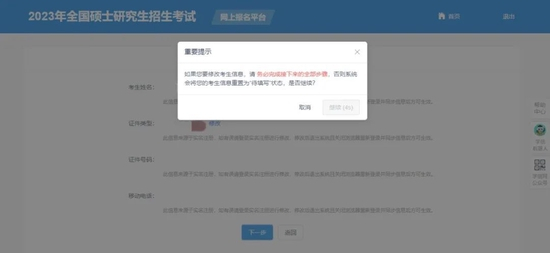 6、如果需要更改信息,请退出系统后重新从研招网首页登录报名系统修改,正式网报结束后任何信息均不能修改。请考生仔细阅读页面文字,认真填写信息并反复核对。