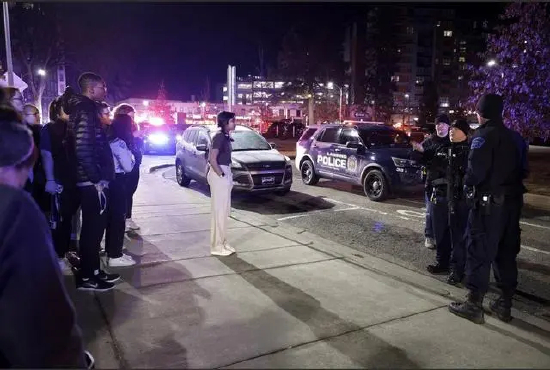 住在校园以东几百米外的学生埃丹·凯利说,事发后警报声响个不停,警方直升机在空中盘旋,气氛非常紧张。他锁上房门并遮挡窗户,“以防万一”。