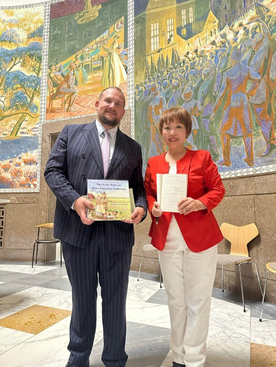 安德斯副市长在致辞中分享了安徒生与中国的特殊情缘。他提到,安徒生自幼便对中国文化怀有浓厚兴趣。尽管从未踏足中国,但他在自传《我的童话人生》中记录了对这个东方国度的向往。安徒生童年时常听人说他的嗓音优美,会带来好运,于是他总期待着奇迹的发生。当听到奥登塞河边的巫婆说“中国就在这条河底下”时,他常常幻想:会不会有一位中国王子在某天夜晚,从地下挖通地球,来聆听他的歌声,带他去中国,赐予他荣耀与财富,最后再将他送回丹麦。