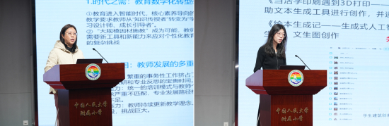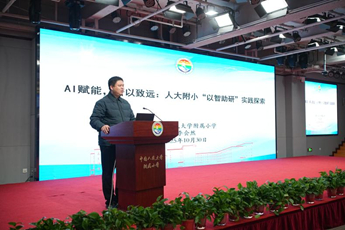 中国人民大学附属小学李会然副校长介绍了学校在“AI赋能学校发展”方面的实践与探索,展现了学校在推进智能教育环境建设、课程融合与教师发展等方面的成果。