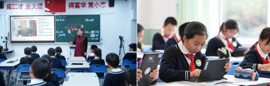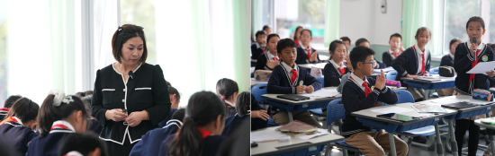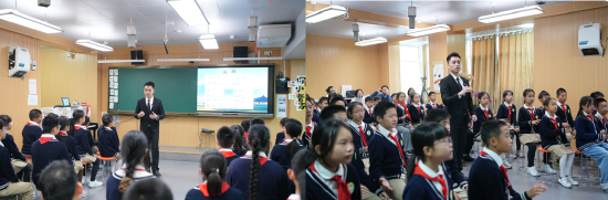 下午的活动以三节AI赋能现场课例展示为核心。语文课上,人大附小翟桂红老师执教《介绍一种事物》,借助AI技术实现作文智能评改,提升写作教学效率;人大附小傅江波老师的音乐课《送别》融合AI技术,打造“乐贯古今”的沉浸式学习体验;海淀区中关村三小高晶晶老师的英语课《I love pets》则通过AI互动增强课堂趣味性与参与感。三节课分别展现了AI跨学科融合的多样可能。