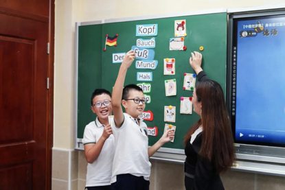 作为国际化教育的重要载体,我校自小学四年级起开设日语、德语小语种选修课程,以“文化理解 + 语言应用”为双核驱动,通过沉浸式情景教学与跨文化实践活动,培养学生语言能力与国际包容心态,助力学生拓宽全球视野,成长为具有国际竞争力的未来人才。