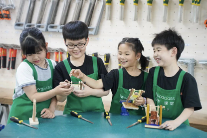 园外投资打造了全国最大、体系最完整的木工教室,将“乐木课堂”纳入必修。通过项目式教学融合多学科知识,专业指导下学生动手完成木作,锻炼创造力、动手能力与立体思维。