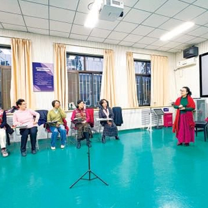 学员汪洋站在教室中央练声,一身咖啡色毛呢西装,齐肩头发烫成波浪,涂着淡淡的口红,非常优雅知性。“我喜欢唱歌,但没有接受过系统的声乐训练。报名合唱课,就是想让自己的歌声更加动听。”她说,银龄夜校跟自己想象得并不一样,老师不是哄着学员,而是一板一眼地抓教学效果。尽管教学过程很严格,但汪洋很快就喜欢上了这种教学方式,因为在学习中她不仅学习到了知识,还获得了成就感。“如果老师总哄着我们,不严格要求,我们的时间不就浪费了吗?”汪洋说。
