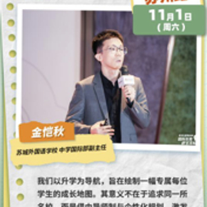展会现场苏城外国语学校中学国际部副主任金恺秋围绕“多元助力,量身定制,成就未来”的主题,深入解读了学校国际教育的特色体系与实践路径,重点回应了家长普遍关注的国际课程适配性、名校申请条件及学校管理严格性三大核心问题,并系统介绍了学校独创的“三航守护体系”。