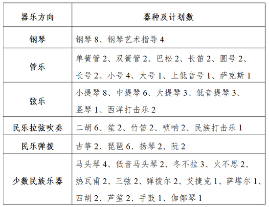 3。 音乐表演(器乐)各方向招生器种及计划如下: