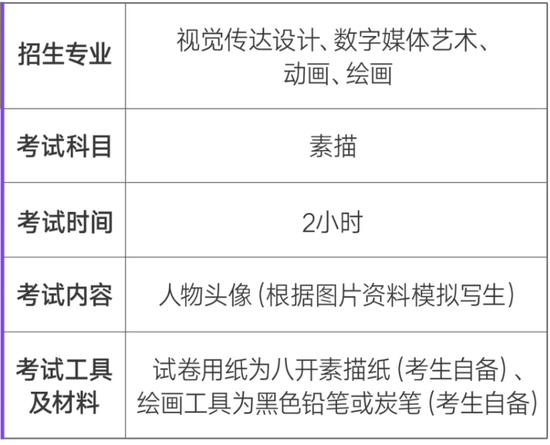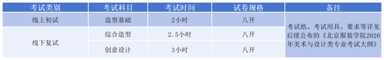 1月13日14:00至1月19日16:00,考生可手机访问下载并安装艺术升App,进入报名系统或者登录北京印刷学院本科招生网的艺术校考报名专栏报名。初试为远程网络考试,时间定在1月22日。考试科目如下: