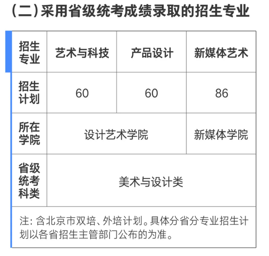 2026年产品设计、珠宝首饰设计与工艺、艺术与科技、环境设计、公共艺术、动画、绘画、中国画、雕塑、摄影专业不组织校考,编制分省分专业招生计划。