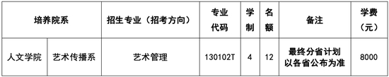 艺术管理专业使用高考成绩录取,编制分省计划。