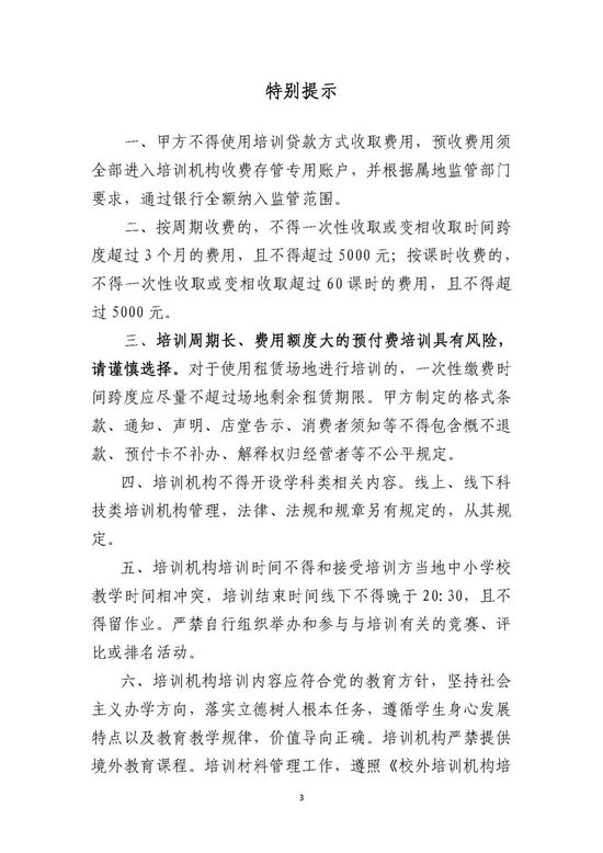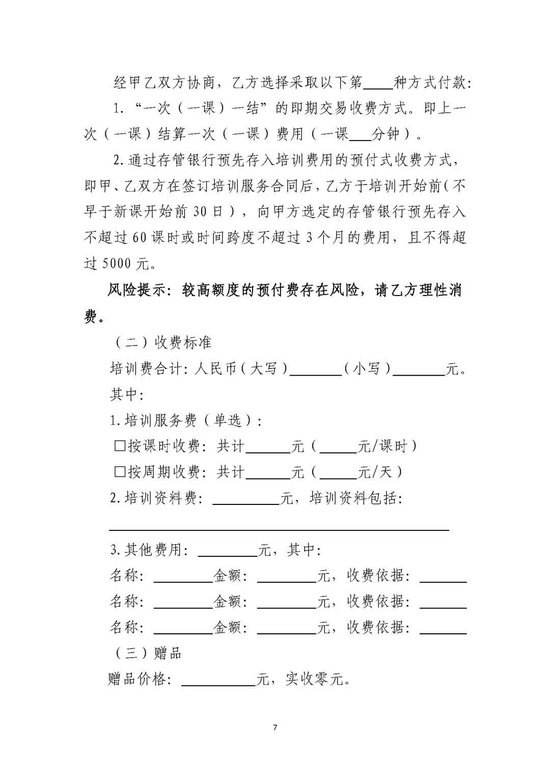 这些收费行为要拒绝:在公示的项目和标准外收取其他培训服务费用;以各种名义向学员的监护人摊派费用或者强行集资;使用培训贷方式收缴培训费用。