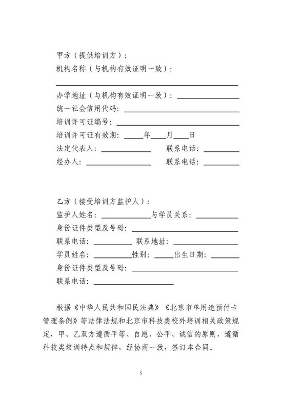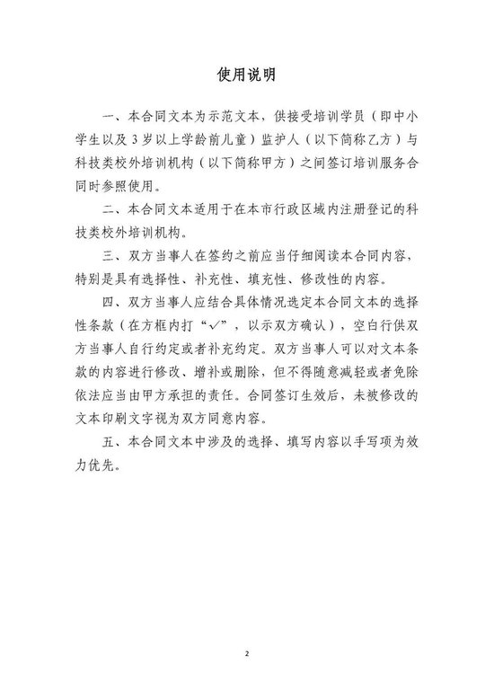 报名缴费前,请参照《北京市科技类校外培训服务合同(示范文本)(试行)》,与培训机构签订规范合同。示范文本可在首都之窗网站,北京市科学技术委员会、中关村科技园区管理委员会网站或北京市市场监督管理局网站免费下载。