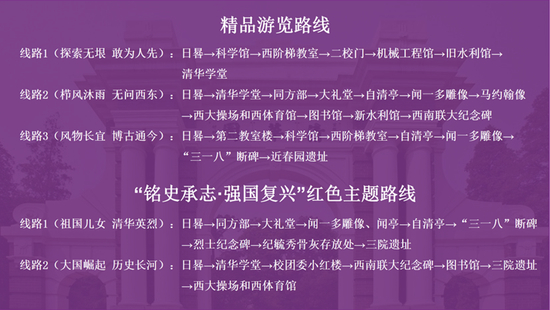 除志愿讲解服务外,学校为参观访客推荐三条精品游览路线及两条“铭史承志·强国复兴”红色主题路线,欢迎广大参观访客漫步校园、探访体验。