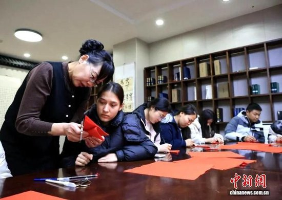 兵团兴新职业技术学院组建的中国民间艺术——剪(刻)纸社团正在开展剪纸作品创作。(资料图)兵团兴新职业技术学院供图