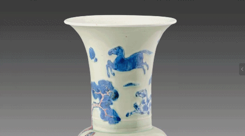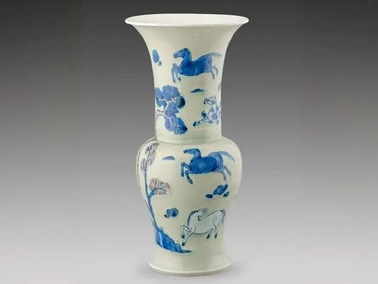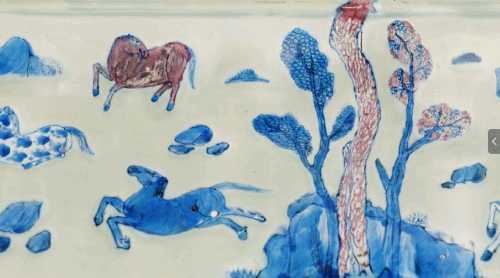 瓷釉间的松柏骏马图