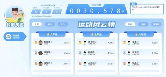 初二(2)班郭妍同学深有感触地表示:“我觉得学校的智慧操场既新奇又实用,让运动变得更有趣、更有动力。大屏上的班级和个人排名,激发了我们的好胜心,让我们主动想要多锻炼、超越同学。”