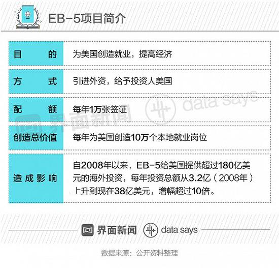 据美国投资界分析,自2008年以来,EB-5签证计划已向美国提供超过180亿美元的海外投资款项,每年投资总额从3.2亿上升到38亿美元,增幅超过10倍。根据美国商务部2017年发布的一份报告,EB-5计划在2012-13财年创造了约17.4万个就业岗位。