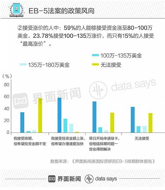 相比排期,投资人的确更能接受EB-5投资额涨价,但与此同时期望办理速度能加快。