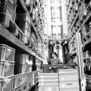 在江苏南京江宁开发区菲尼克斯电气物流中心,工作人员通过扫码识别装卸产品。