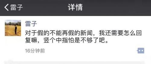 对此,雷振剑与刘建宏双双发布朋友圈予以否认。雷振剑发朋友圈称“对于假的不能再假的新闻,我还需要怎么回复嘛。”