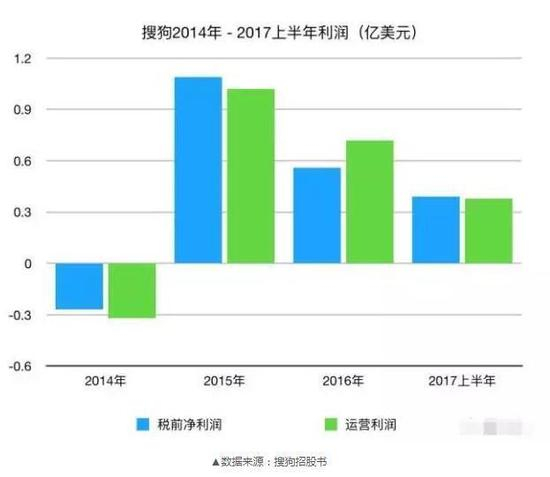 让搜狗骄傲的是盈利能力,招股书显示,目前搜狗已经连续15个季度盈利,2015年和2016年运营利润分别达到1.02亿美元和7160万美元,但是成本增幅高于营收增幅。2014-2016年,搜狗的营收成本分别为1.66亿美元、2.48亿美元和3.03亿美元,涨幅分别为49.4%、22.2%和27.4%,而搜狗营收在以上三年的涨幅分别为50.8%、10.6%和10.2%,为提高营收,搜狗加大成本投入,但拉动营收的边际效应却在递减。
