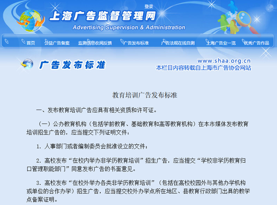 标准 | 上海市场监督管理局发布《教育培训广告发布标准》