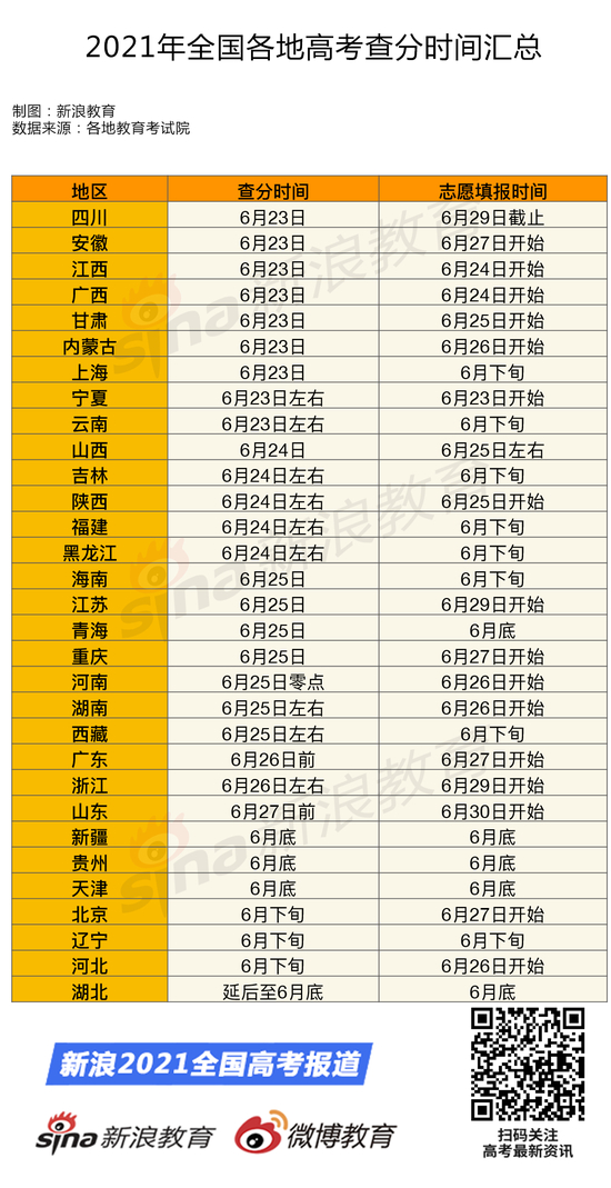 高考 | 2021年全国高考结束 各地高考查分时间一览