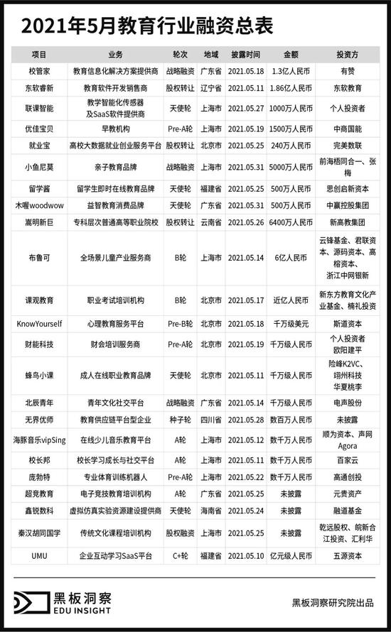 报告 | 5月教育行业融资报告:23家企业融资13.24亿元