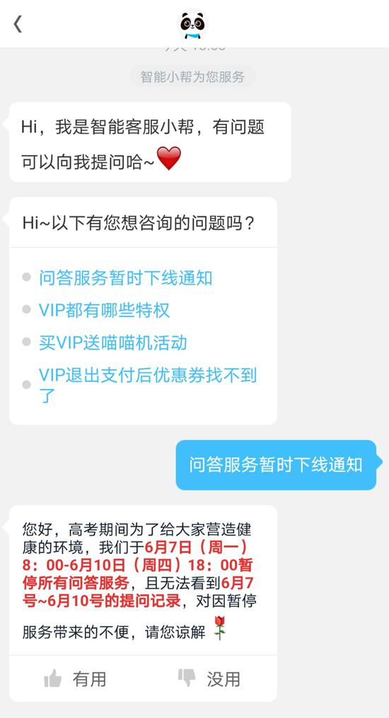 6月8日中午,作业帮VIP问答小程序发布了高考期间问答业务暂停通知。