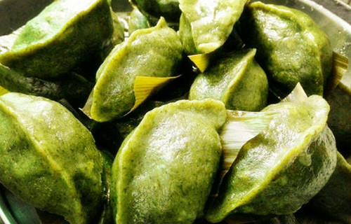 To Hakka people in China, ai ban, rice dumplings made from wormwood and rice, is a necessary dish on Tomb Sweeping Day. They blend wormwood paste and glutinous rice powder together and add sesame, peanuts and black-eyed beans. After steaming the dumplings for 15-20 minutes, the food is ready.