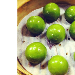 People in the Jiangnan region often eat this kind of green colored balls made from glutinous rice on Tomb Sweeping Day. The green color is from the juice of brome grass that is added in the rice.