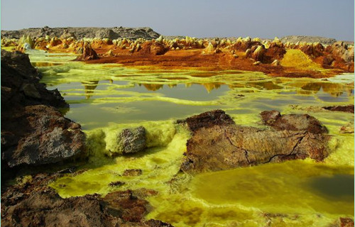 位于东非大裂谷的达纳吉尔凹地简直就是一个灼热、干燥、熔岩喷涌、湖泊酸化的地狱。不知何故,这个地方竟然还存在生命体。