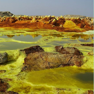 在达纳吉尔凹地两个不同的地方发现有生物存在,其中一个是酸性的水池,酸碱值为零,这是一个新的嗜极类微生物记录。这是迄今为止地球上能找到生命存活酸性最强的地方。事实上,这是一个极端的地方,仅仅把这些生物称为“多嗜极类生物”远远不够。这些“多嗜极类生物”能够同时拥有在极端的酸性、高温和高盐度下生存的能力。