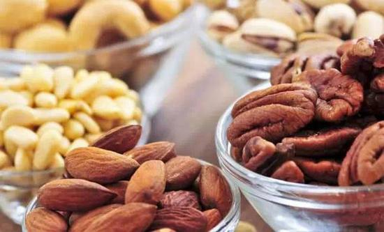 干果类腰果Cashew nuts 花生peanut 无花果fig 榛子filbert hazel 栗子chestnut 核桃walnut 杏仁almond 果脯preserved fruit 芋头taro 葡萄干raisin cordial 开心果pistachion 巴西果brazil nut 菱角,荸荠water chestnut (和国内食用法不同,做坚果食用)