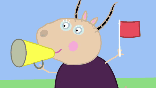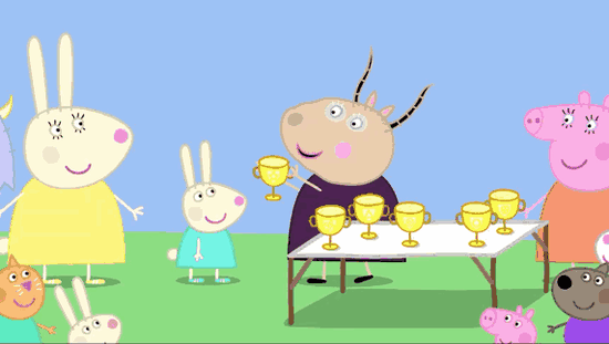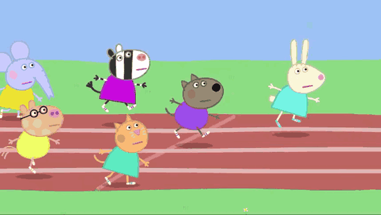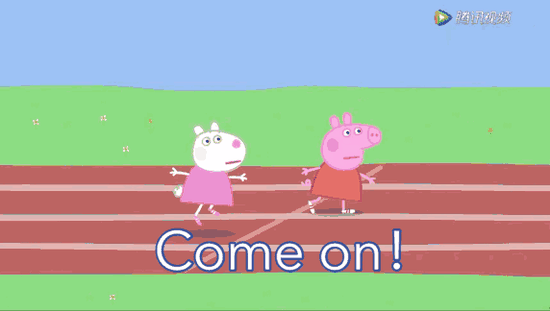 比如动画片小猪佩奇里佩奇和兔子在比赛中一前一后,就可以描述成: