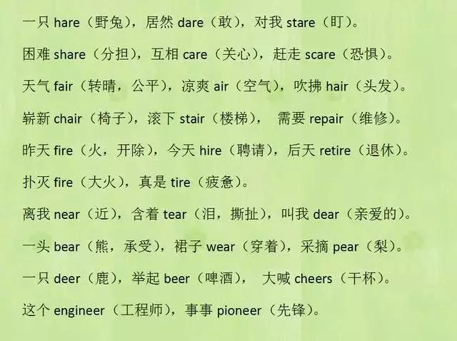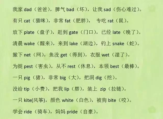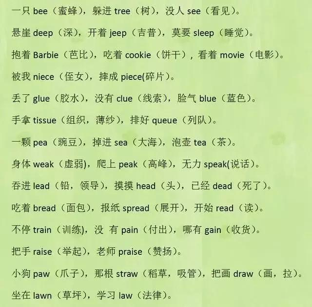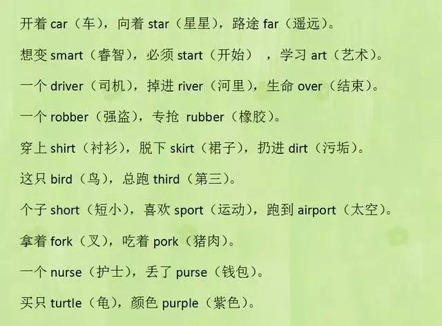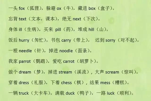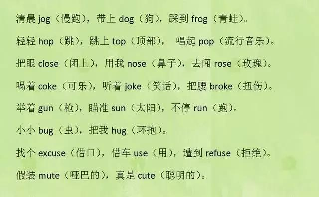 鉴于很多家长向我咨询有关孩子英语学习方面的问题,今天我整理了一份趣味记单词的方式,用顺口溜的方式记忆,孩子的单词一定记得又快又牢固,希望这种记忆方法能够帮助到孩子们的学习!