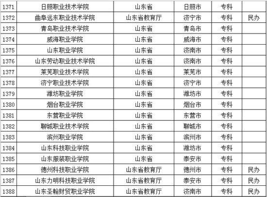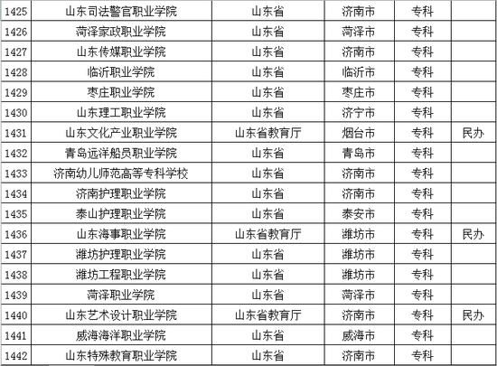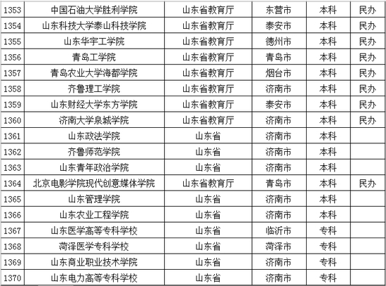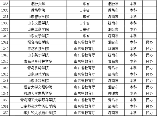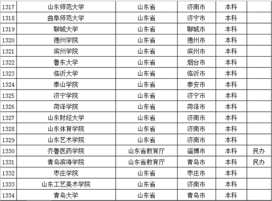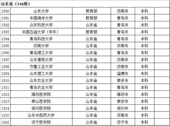以下是山东省普通高等学校名单: