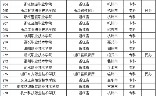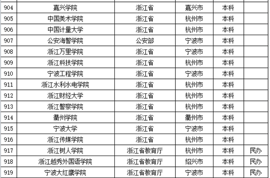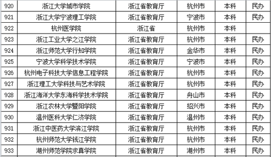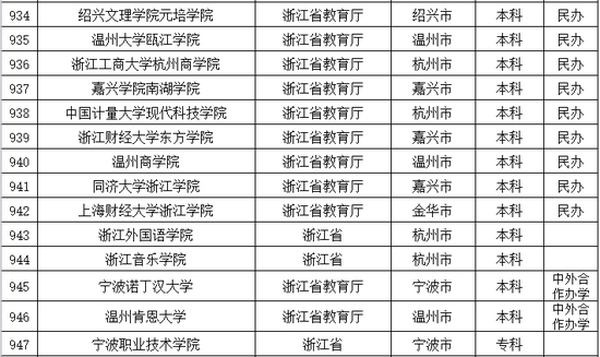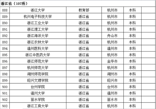 以下是浙江省普通高等学校名单: