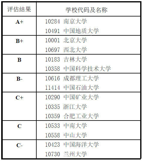 教育部发布2017学科评估结果:0709地质学专业