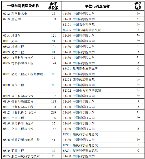 本次共有16家科研院所的66个学科、5家党校的20个学科和中国科学院大学的48个学科申请参加了评估(注:同学科评估结果相同的单位排序不分先后,按单位代码排列)。