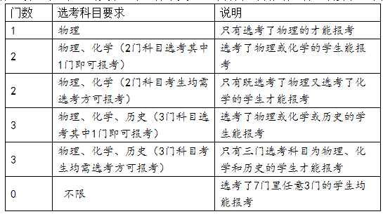 需要注意的是:2门、3门科目之间有“或”与“和”的关系,学生除了关注选考科目还需仔细查看此项要求。举例说明如下: