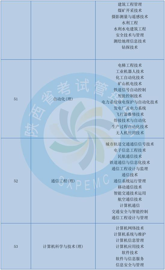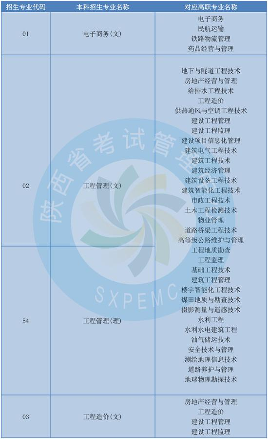《2019年陕西省普通高等教育专升本考试专业对应目录》已由省教育厅印发。报考2019年陕西省普通高等教育专升本考试的考生,选择本科专业时,高职毕业专业必须符合本目录对应关系规定,高职毕业专业对应多个本科招生专业时,只能选择其中一个本科招生专业报考。