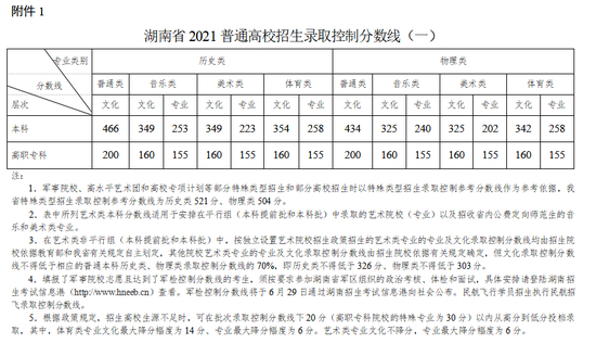 湖南2021高考分数线:普通类本科历史类466物理类434