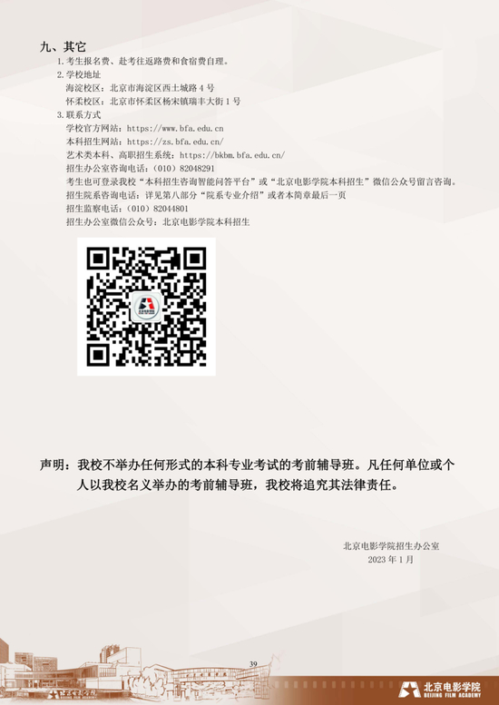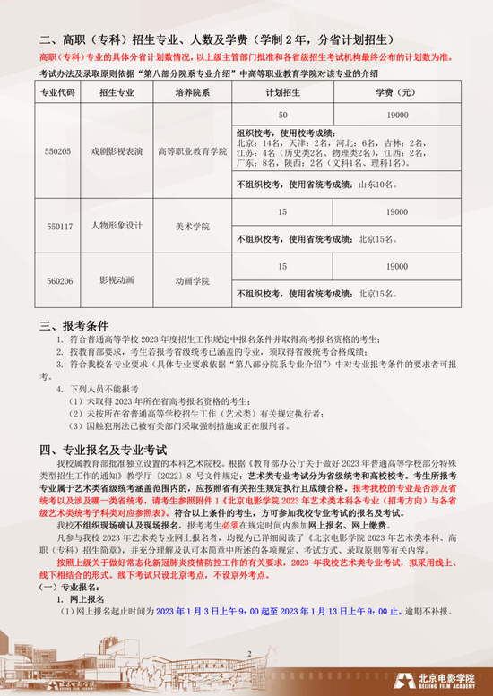 (原标题:北京电影学院2023 年艺术类本科、高职(专科)招生简章公布)