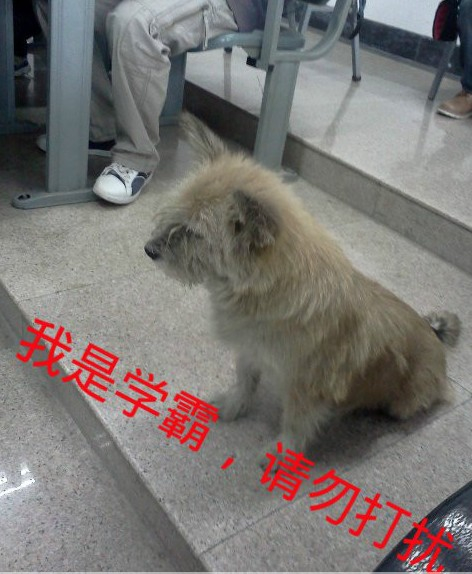 代号:‘学霸狗’,学校:保定市高校圈,稳坐前排听课听得很认真,一会跑课堂听课,一会溜达到图书馆上自习。几所高校离得近,都留下了它的身影。